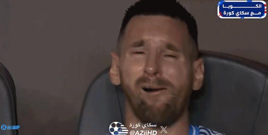 梅西第65分钟被换下,解开球鞋并扔在地上,随后坐在替补席捂脸痛哭,一直哭到69分钟仍在哭泣。