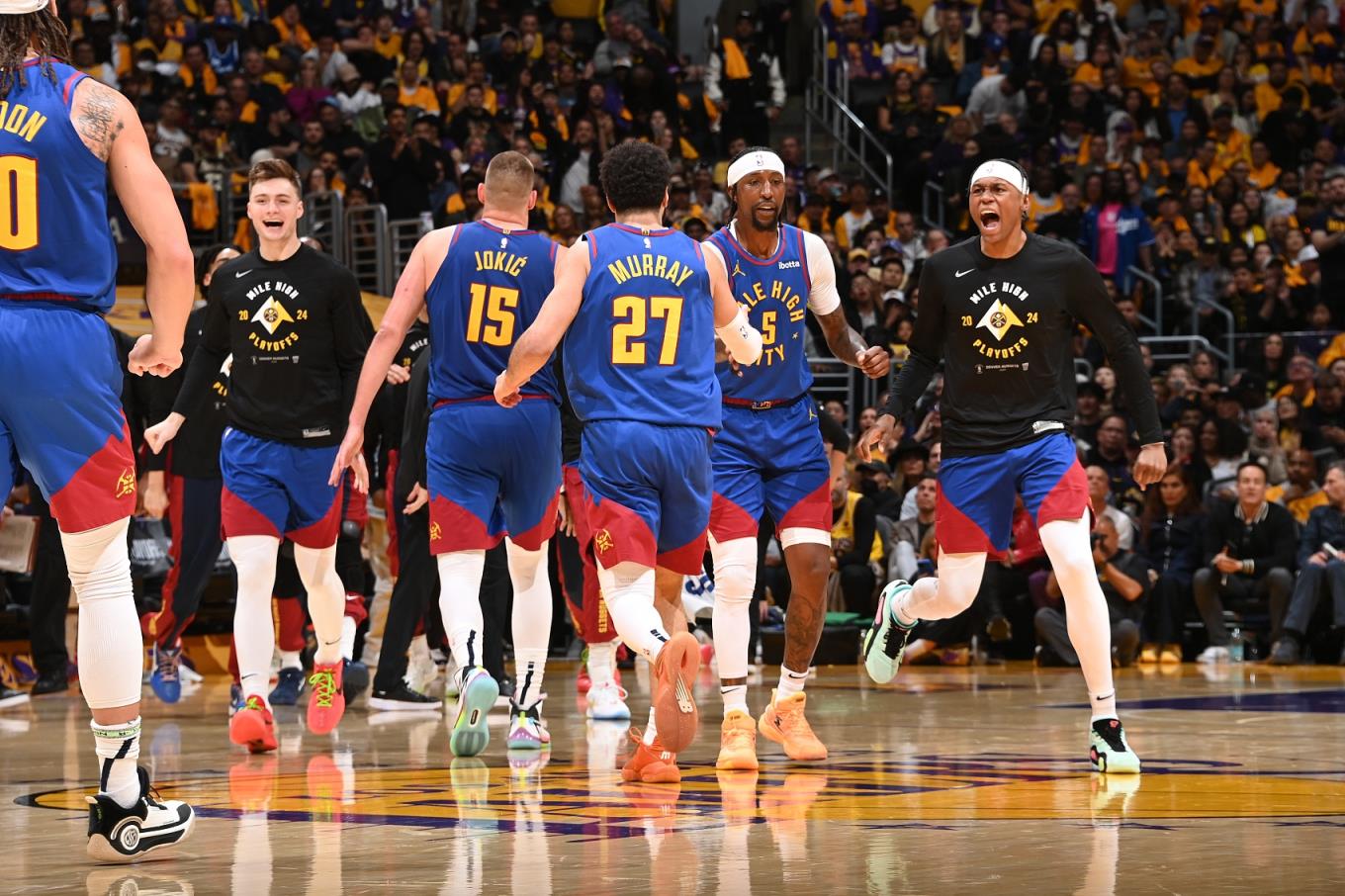 詹眉和里夫斯轮番持球硬解和掘金对轰,约老师和戈登绞杀篮下撑起基本盘,穆雷、小波特、波普首节合计10中2——熟悉的剧情,卫冕冠军慢热则湖人领先。