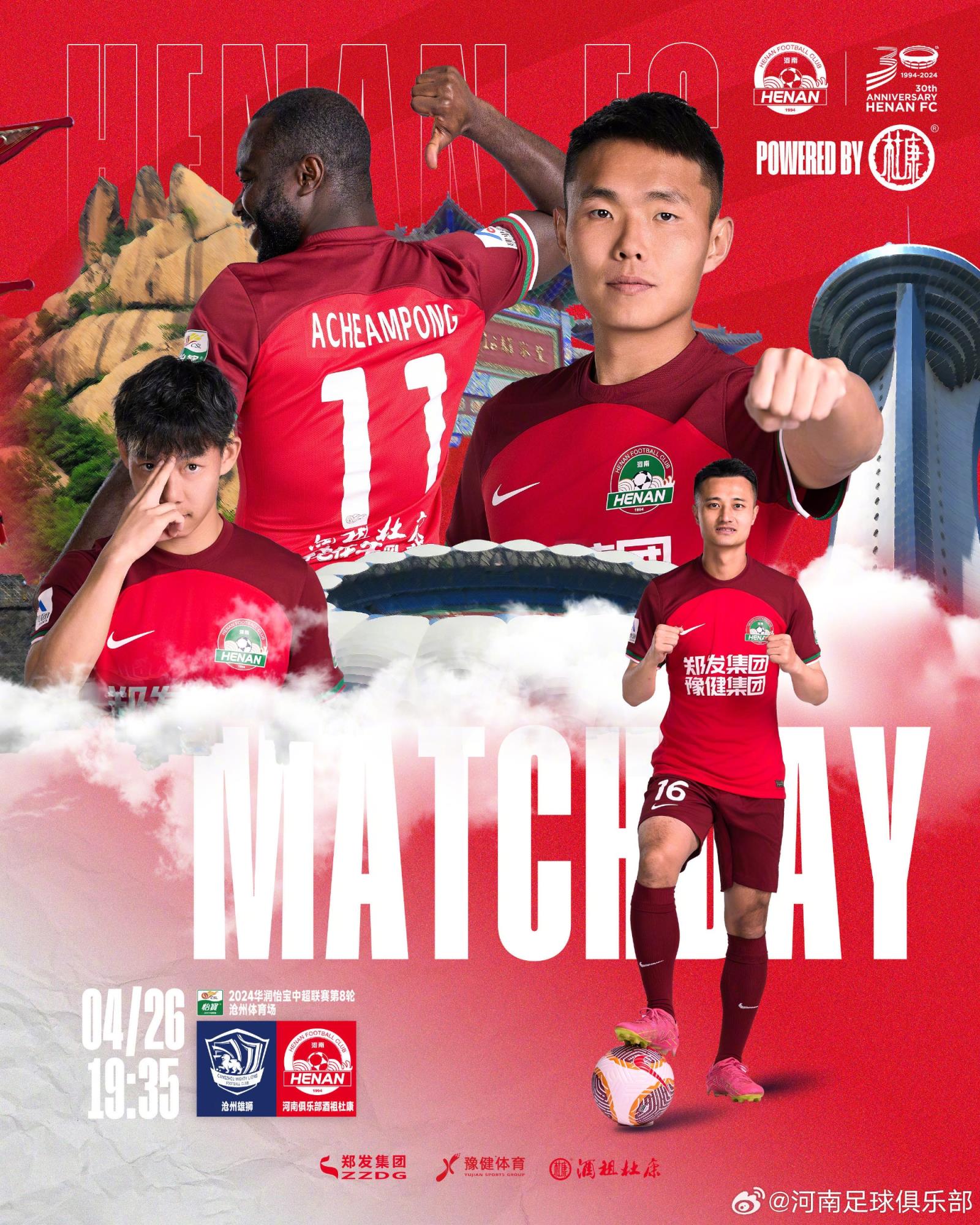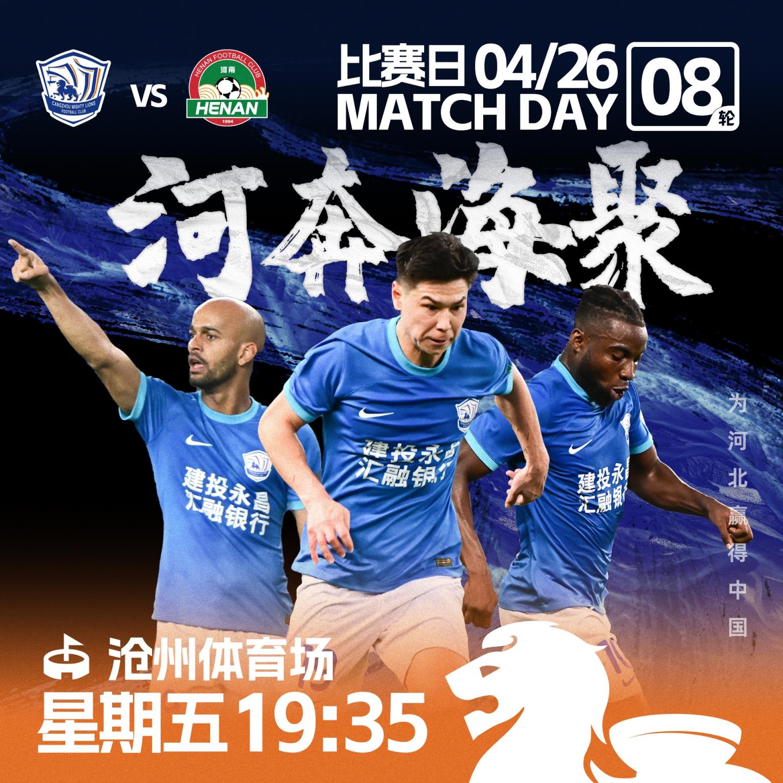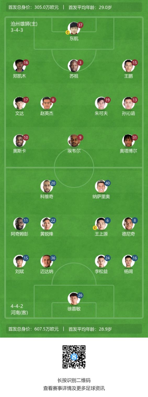 04月26日讯 北京时间今天19:35,中超第八轮。沧州雄狮vs河南队,赛前双方首发阵容公布。